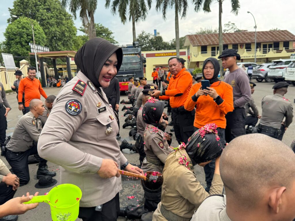 Rangkaian kegiatan pembinaan tradisi tersebut diakhiri dengan upacara penyiraman air kembang dan penyematan baret secara simbolis oleh Wakapolres Bogor Kompol Adhimas Sriyono Putra,.SIK,.MM didampingi Pejabat utama Polres Bogor.